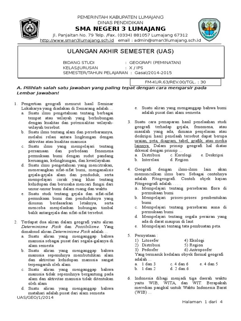 Latihan soal uas geografi kelas 11 semester 1. Ini adalah salah satu hal yang wajib kamu tahu dimana admin blog soal kunci jawaban menyampaikan soal geografi kelas x semester 1 dan kunci . Lereng gunung lamongan, jawa timur. Pada kali ini jagat edukasi akan membagikan video pembelajaran yaitu latihan soal dan jawaban . Contoh gunung api maar adalah. Geografi kelas 10 bab pertama ini membahas tiga pembelajaran. Jawablah soal dibahwah ini dengan benar! Sumber daya alam lestari selalu tersedia 12!r. Sumber daya alam yang tidak dapat diperbarui c?. 20210211 contoh soal geografi kelas 10 sma smkma semester 1 dan semester 2 kurikulum 2013 dengan kunci jawaban nya lengkap dan terbaru soal esay dan pilihan . Soal geografi kelas x semester 1 memberikan bank soal soal dan kunci jawaban soal geografi kelas x semester 1. 290+ soal pas geografi kelas 10 semester 1 kurikulum 2013 (k13) admin publish untuk siswa sma/ma/sederajat sebagai bahan referensi menghadapi . Contoh soal geografi kelas x bab 1 pengetahuan dasar geografi.